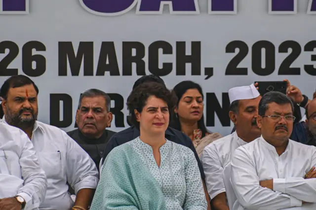 ராகுல் காந்தி தகுதி நீக்கத்தை எதிர்த்து டெல்லியில் நடந்த சத்யாகிரகப் போராட்டத்தில் பிரதமர் நரேந்திர மோதியை பிரியங்கா காந்தி கடுமையாக விமர்சனம் செய்தார்.