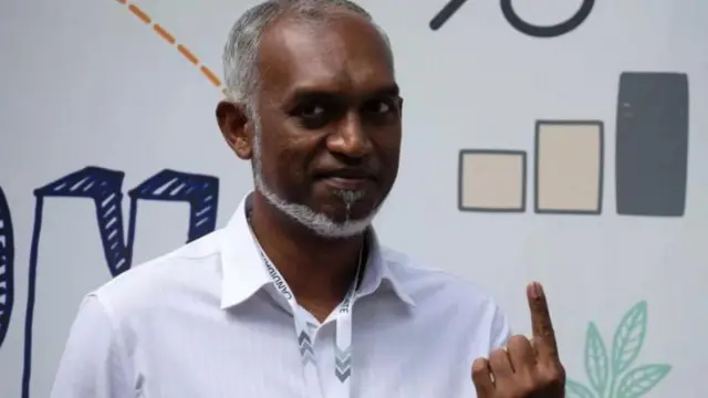 முகமது முய்சுவுக்கு 54 சதவிகித வாக்குகள் கிடைத்தன. தலைநகர் மாலேயின் மேயரான முகமது முய்சு தனது தேர்தல் பிரச்சாரத்தில் 'இந்தியா அவுட்' அதாவது இந்தியாவை நாட்டைவிட்டு வெளியேற்றுவோம் முழக்கத்தை முன்வைத்திருந்தார்.