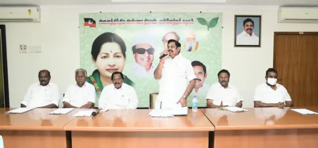 அ.இ.அ.தி.மு.கவின் மாவட்டச் செயலாளர்கள், நாடாளுமன்ற உறுப்பினர்கள், சட்டமன்ற உறுப்பினர்கள், செய்தித் தொடர்பாளர்கள் ஆகியோரின் கூட்டம் இன்று காலை பத்து மணியளவில் ராயப்பேட்டையில் உள்ள அக்கட்சியின் தலைமையகத்தில் நடைபெற்றது.