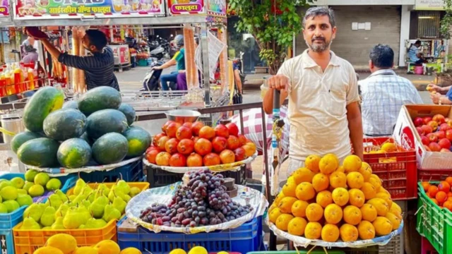 பரபரப்பான மும்பை சாலையில் கடந்த ஏழு ஆண்டுகளாக அருண்குமார் பழ வியாபாரம் செய்து வருகிறார்.