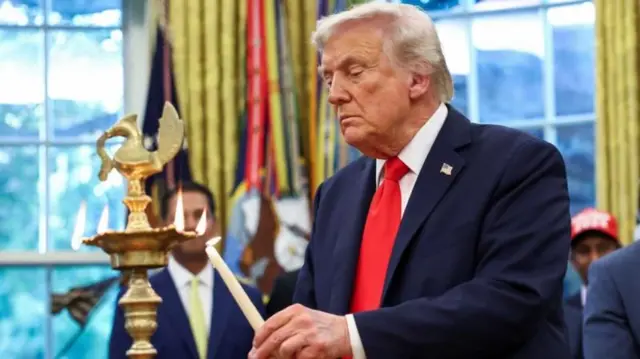 அதற்கு முன்பாக செவ்வாய்க்கிழமையன்று அதிபர் டிரம்ப் வெள்ளை மாளிகையில் தீபாவளியைக் கொண்டாடினார்.