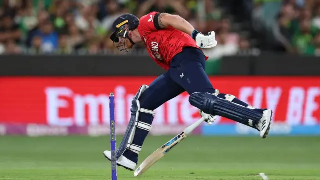 ஆனால் அதற்கு பாகிஸ்தான் துளியும் இடம் தரவில்லை. இறுதிவரை தமது பந்துவீச்சின் மூலம் இங்கிலாந்துக்கு அச்சுறுத்தலை தந்தது. ஷஹீன் அஃப்ரிடி வீசிய முதல் ஓவரின் கடைசி பந்தில் அலெக்ஸ் ஹேல்ஸ் ஆட்டமிழக்க, ஃபில் சால்ட் 10 ரன்களில் விடைபெற்றார். அதிரடி ஆட்டத்தை தொடங்கிய ஜாஸ் பட்லரை ஹாரிஸ் ரவுஃப் வீழ்த்தினார். இங்கிலாந்து அணி 45 ரன்களுக்கு 3 விக்கெட்களை இழந்தது. ஹேரி ப்ரூக் - பென் ஸ்டோக்ஸ் ஜோடி சேர்ந்து அணியை சரிவில் இருந்து மீட்கத் தொடங்கினர்.