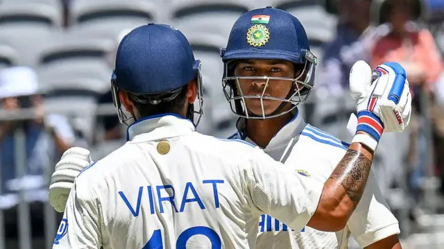 அடுத்து விராட் கோலி களமிறங்கி, ஜெய்ஸ்வாலுடன் சேர்ந்தார். கோலியும் ஜெய்ஸ்வால் ஆட்டத்தைப் பார்த்துப் புகழ்ந்து சல்யூட் செய்து மைதானம் சென்றார்.