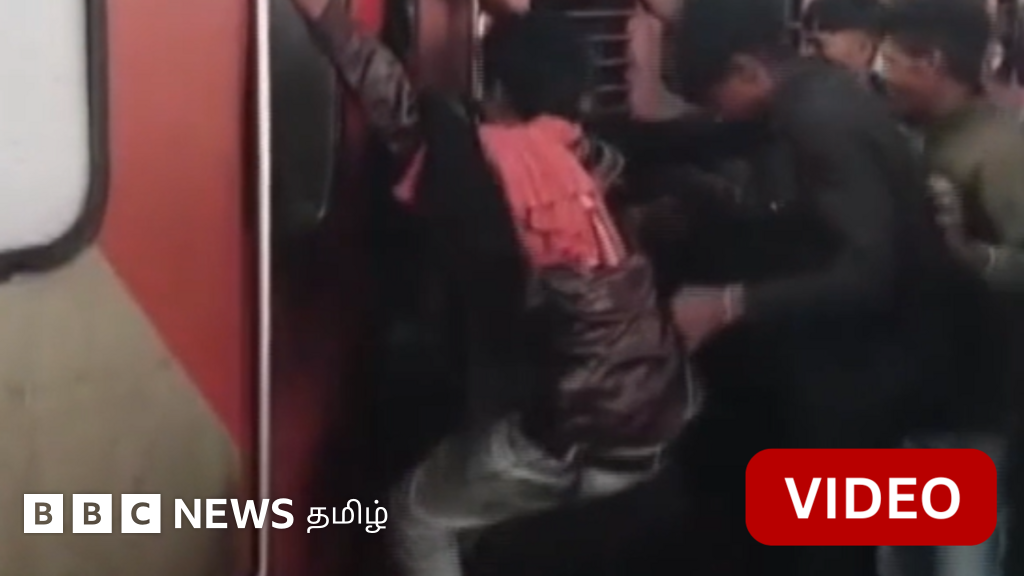 காணொளி: ரயில் கதவை எட்டி உதைத்து திறக்க முயன்ற பயணிகள் - ஏன்?