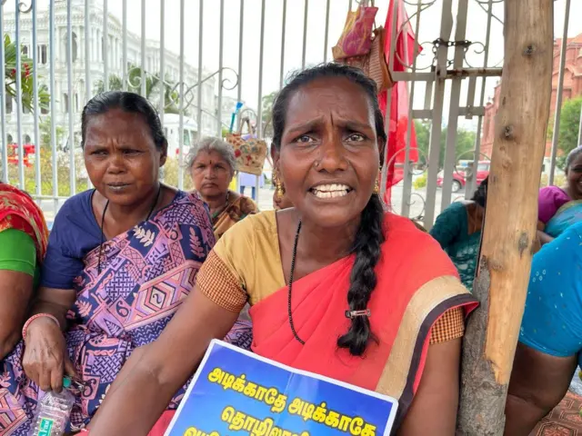 "கஜா புயல், வர்தா புயல், கொரோனா தொற்று எனப் பேரிடர் காலங்களில் வேலை பார்த்தோம். குழந்தைகளைக் கூட கவனிக்கவில்லை. மக்களுக்காக உழைத்தோம். அப்போது எங்களை தெய்வமாக பார்த்தவர்கள், இப்போது குப்பையைவிடக் கேவலமாக தூக்கிப் போடுவது நியாயமா?" எனக் கேள்வி எழுப்புகிறார், தூய்மைப் பணியாளர் ரீட்டா.
