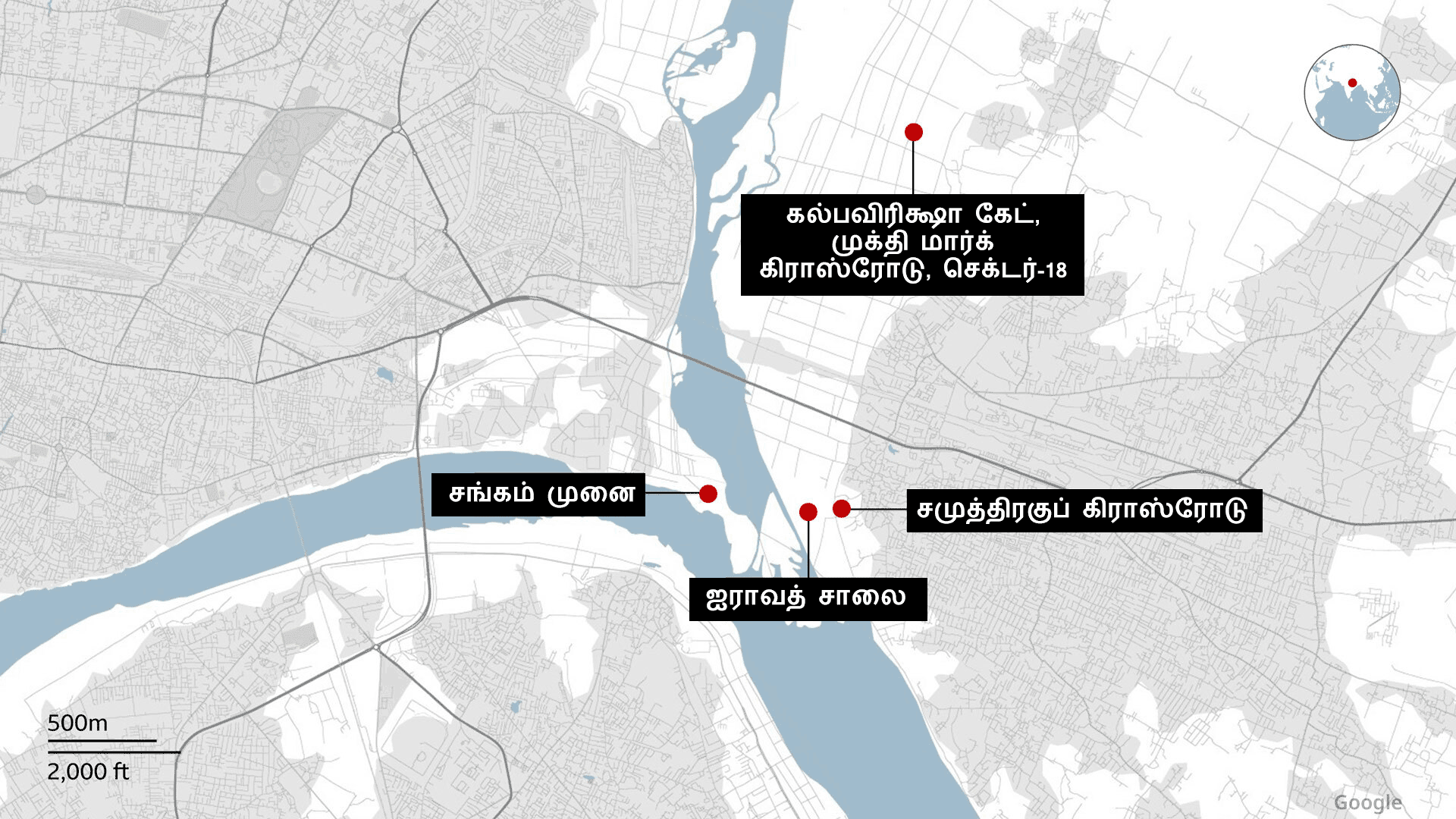 உயிரிழந்தவர்களின் குடும்பங்களை சந்தித்தப் பின்னர், கும்பமேள பகுதியில் சங்கம் நோஸ், ஜுன்சியை நோக்கி சமுத்திரகுப்த சவுரஹா மற்றும் ஐராவத் மார்கில் மட்டுமே நெரிசல் ஏற்படவில்லை என பிபிசி கண்டுபிடித்தது.