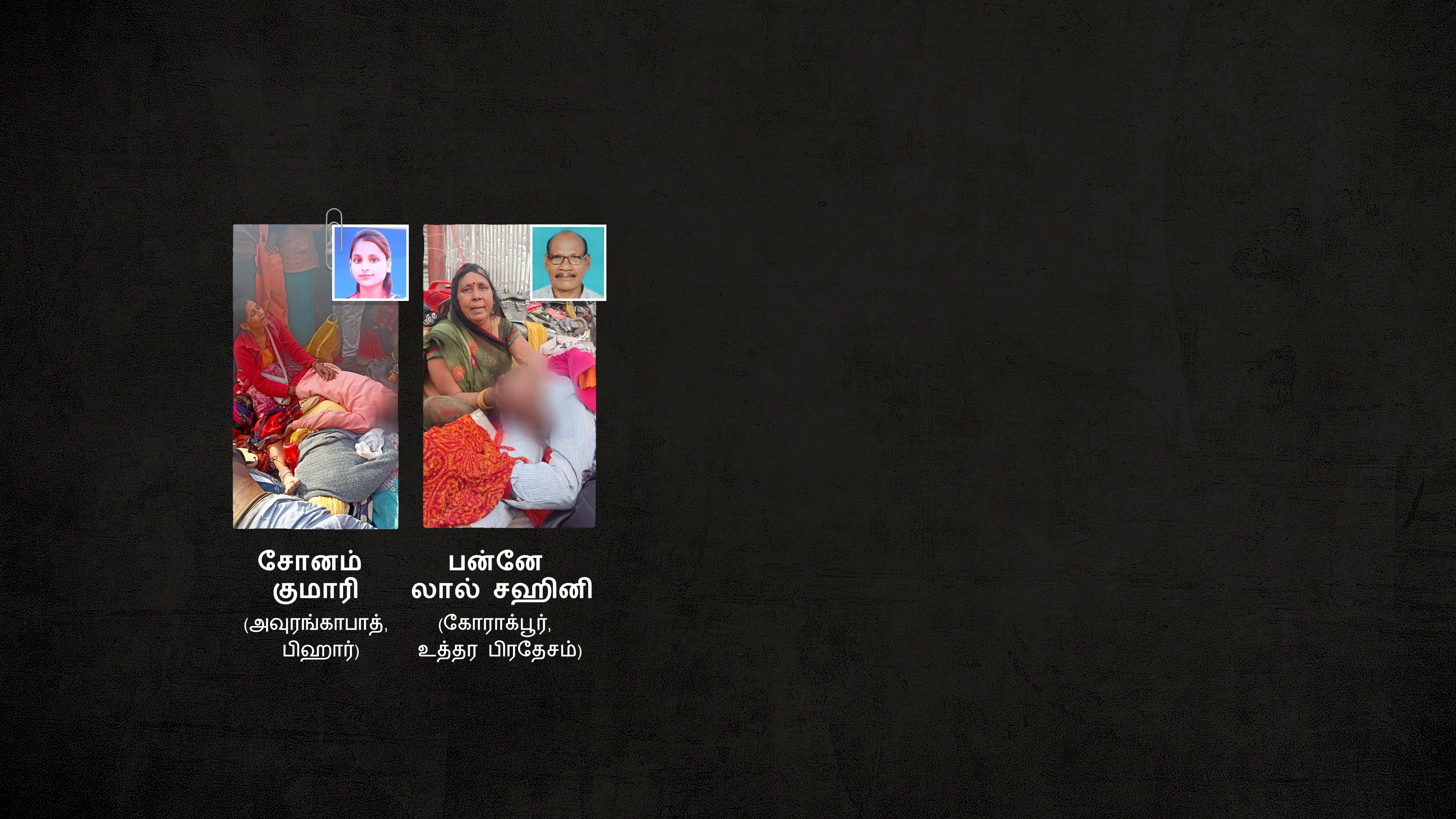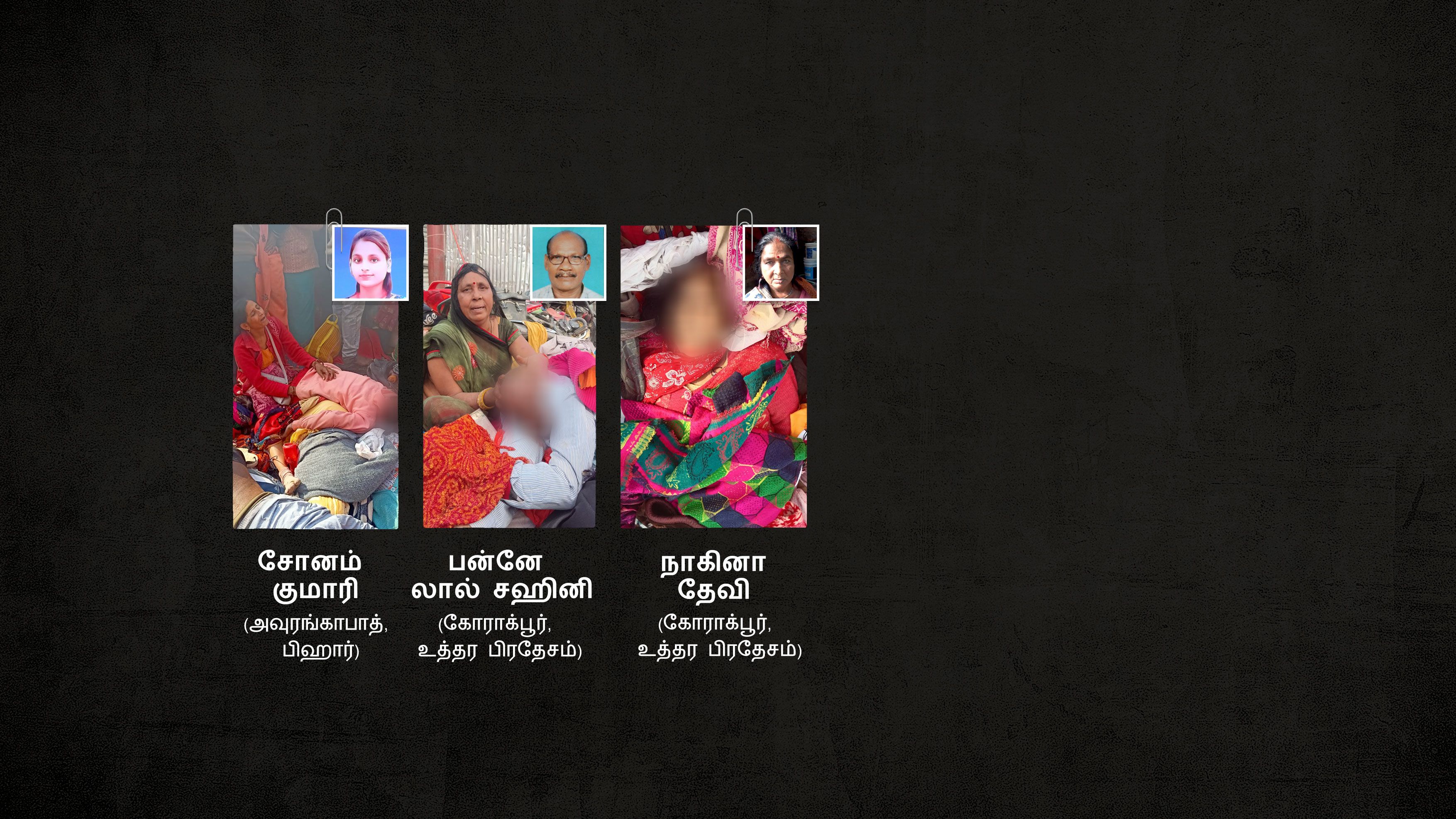 மீனா பாண்டேவுக்கு அருகே, உத்தரப் பிரதேச மாநிலம் கோரக்பூரை சேர்ந்த பண்ணே லால் சானி மற்றும் நாகினா தேவியின் உடல்கள் கிடந்தன.
