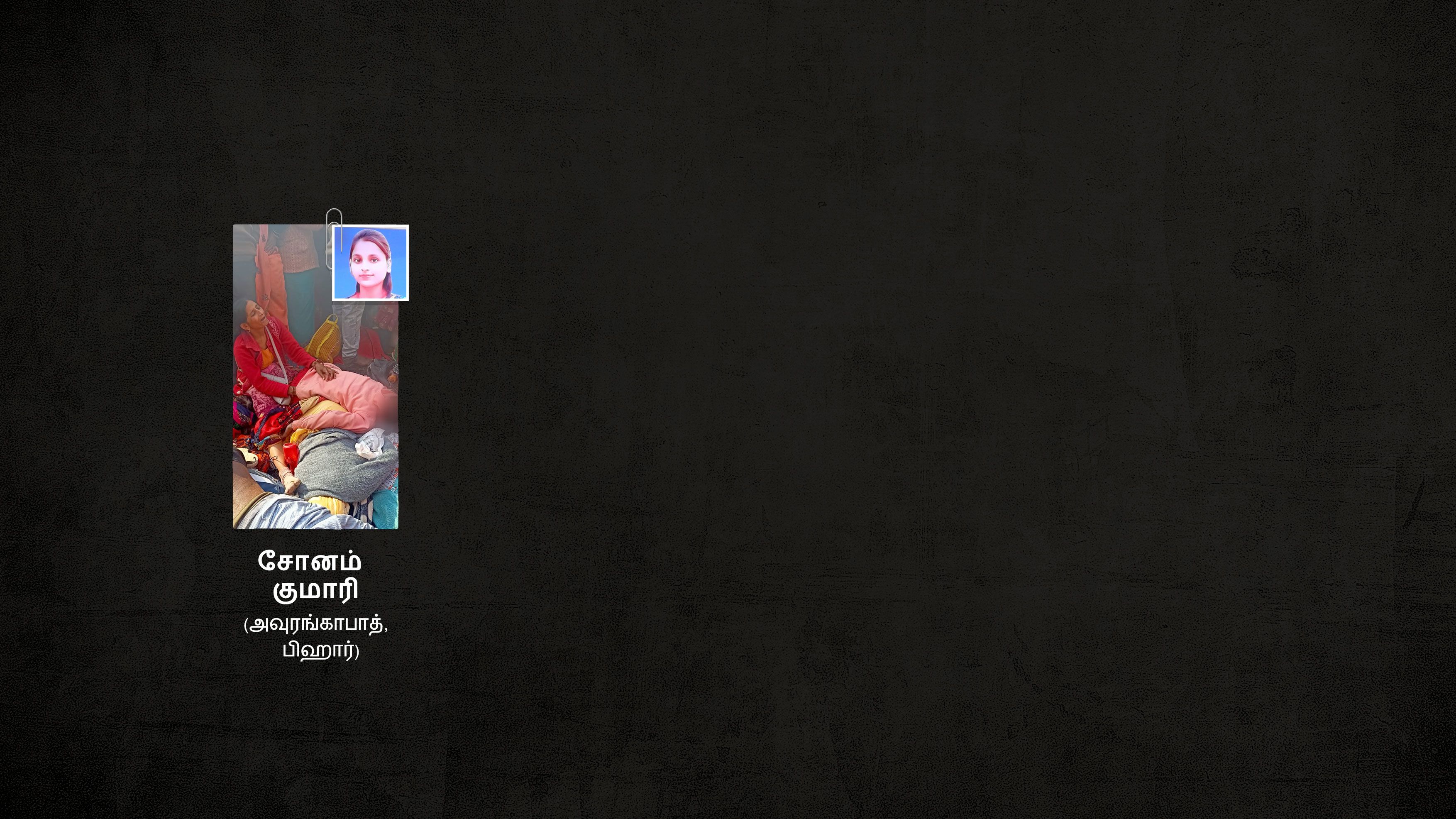 பீகார் ஒளரங்காபாத்தை சேர்ந்த ரஞ்சனா குமாரியும் தனது மகள் சோனம் குமாரியின்(வயது 21) உடலுடன் இங்கு அமர்ந்திருந்தார்.