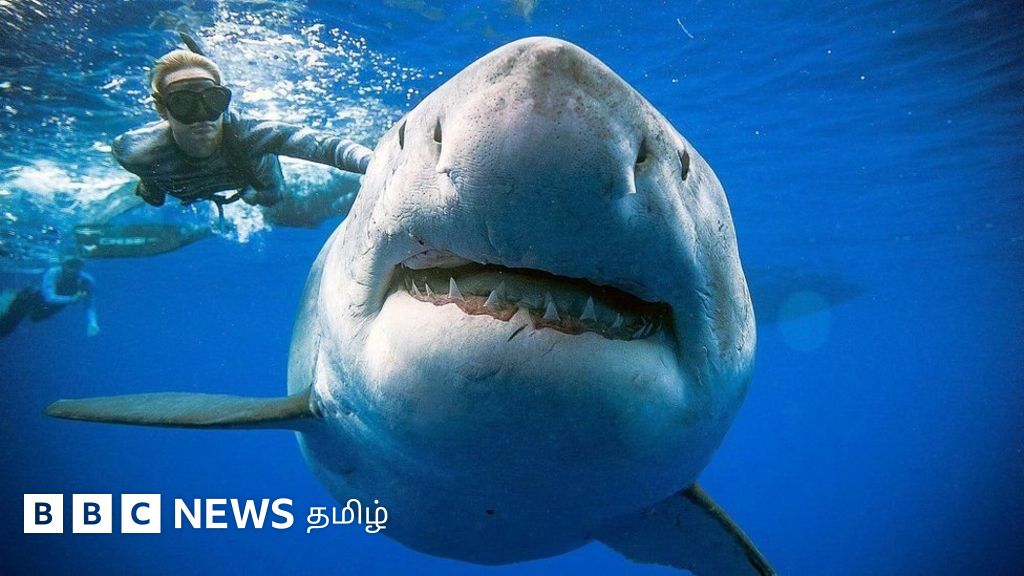 ராட்சத வெள்ளை சுறா ஒன்றை மிகவும் நெருக்கமாக கண்டுள்ள முக்குளிப்போர் அணியொன்று, அதனை நேரலையில் அனைவருக்கும் தெரிவித்திருக்கின்றனர்.