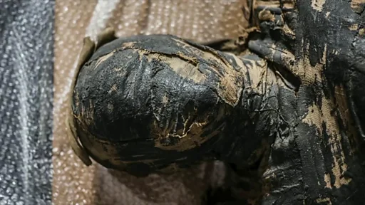 ஆராய்ச்சியாளர்களால் அக்குழந்தையின் பற்களை ஆராய முடிந்தது. அப்படித் தான் அது ஒரு 2 - 3 வயதுக்கு இடைப்பட்ட மனித குழந்தை என உறுதி செய்ய முடிந்தது. பரிசோதனையில் அக்குழந்தையின் உடல் தாயின் வயிற்றுக்குள் இருக்கும் கருவைப் போல கிடத்தப்பட்டிருப்பது தெரிய வந்திருக்கிறது.