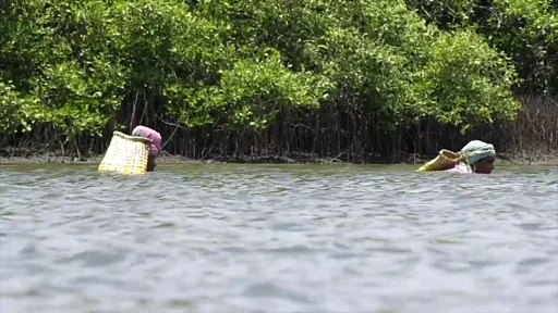 இராமநாதபுரம் மாவட்டத்தில் கடற்கரை கிராம பெண்கள் ஆபத்தை அறியாமல் கழுத்து அளவு தண்ணீரில் இறங்கி உணவுக்காக கைகளால் இறால் மீன்களை பிடிக்கின்ற நிலைமையில் வாழ்ந்து வருகின்றனர்.