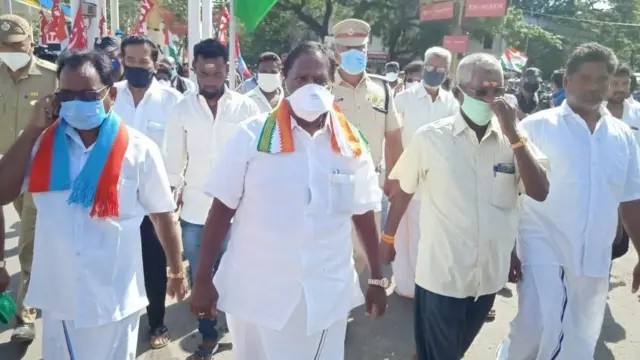 "புதுச்சேரியில் மதசார்பற்ற கூட்டணி கட்சிகள் சார்பில் துணைநிலை ஆளுநர் கிரண்பேடியை புதுச்சேரி மாநிலத்தை விட்டு வெளியேறு என்ற கோஷத்தோடு அமைதியான முறையில் இந்த போராட்டத்தை நடத்துகிறோம். இந்த போராட்டத்திற்கு முக்கியமான காரணம் புதுச்சேரி மாநில மக்களுடைய உரிமைகளை பறிக்கின்ற வகையில் துணைநிலை ஆளுநர் கிரண்பேடி செயல்படுகிறார்" என்று புதுச்சேரி முதல்வர் நாராயணசாமி பிபிசி தமிழிடம் தெரிவித்தார்.