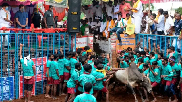 மதுரை அவனியாபுரத்தில் வியாழக்கிழமை நடைபெற்ற தமிழர்களின் பாரம்பரிய வீர விளையாட்டான ஜல்லிக்கட்டு போட்டியில் நூற்றுக்கணக்கான வீரர்கள், காளைகள் கலந்து கொண்ட நிகழ்வு குதூகலத்துடன் நடைபெற்றது.