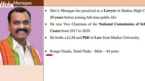 சமீபத்தில் பிரதமர் மோதி தலைமையிலான இந்திய அமைச்சரவை விரிவுபடுத்தப்பட்டபோது, அதில் தமிழ்நாட்டைச் சேர்ந்தவரும் மாநில பாஜக தலைவருமாக இருந்த எல். முருகன் இணை அமைச்சராக இணைத்துக் கொள்ளப்பட்டார். பதவியேற்கும் நாளில், அவர் குடியரசு தலைவர் மாளிகையில் அளித்த தற்குறிப்பில் தமது சொந்த ஊரை நாமக்கல் என்பதற்கு பதிலாக 'கொங்கு நாடு' என்று குறிப்பிட்டிருந்தார்.
