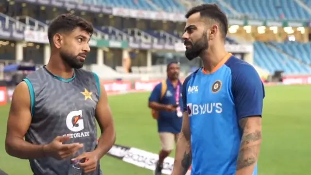 விராட் கோலி: பாகிஸ்தான் பவுலருக்கு 'ஆட்டோகிராஃப்' ஜெர்சியை பரிசளித்த தருணம்