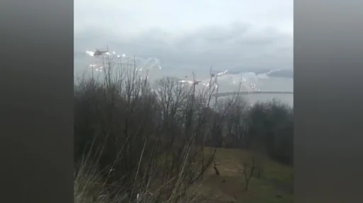 யுக்ரேனிய தலைநகர் கீவ் அருகே தாழ்வாகப் பறந்த ரஷ்ய ஹெலிகாப்டர்கள் சுடப்படும் காணொளி வெளியாகியுள்ளது. அதில் திடீரென கூட்டமாக வரும் ரஷ்ய ராணுவ ஹெலிகாப்டர்கள், யுக்ரேனிய படையினரால் சுடப்படுகின்றன.