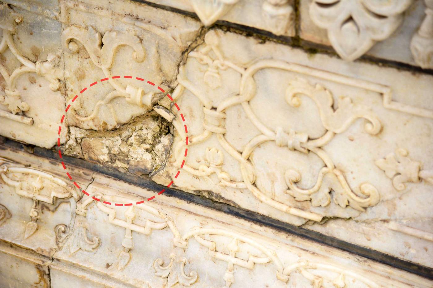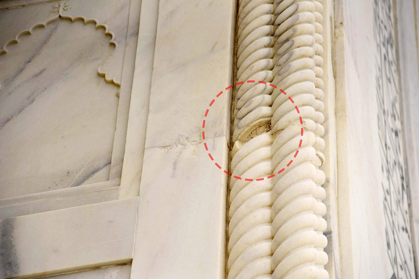 தாஜ்மஹாலில் ஏற்கனவே ஏற்படத் தொடங்கிய விரிசல்கள், தற்போது மிகவும் ஆழமாகி வருகின்றன.தாஜ்மஹாலின் சிறப்பம்சங்களில் ஒன்றான தூண்களின் மேற்பகுதிகள் உடைந்துவிழும் நிலையில் உள்ளன. தாஜ்மஹாலில் ஏற்படும் விரிசல்களை மூடி, பழுதுபார்க்கும் பணிகளும் போதுமான அளவு மேற்கொள்ளப்படவில்லை.