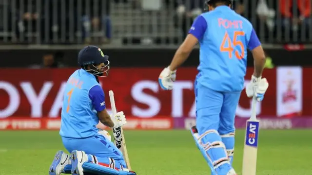 நடப்பு டி20 உலகக்கோப்பை தொடரில் அடுத்தடுத்து அரைசதம் பதிவு செய்த விராட் கோலி மீதான எதிர்ப்பார்ப்பு இன்றைய ஆட்டத்தில் அதிகமாகவே இருந்தன. இருப்பினும் அவர் 12 ரன்களில் ஆட்டமிழந்து ஏமாற்றினார். அக்சர் பட்டேலுக்கு பதில் அணியில் சேர்க்கப்பட்ட தீபக் ஹூடா டக் அவுட். ஹர்திக் 2, தினேஷ் கார்த்திக் 6 ரன்களில் வெளியேறினர்.