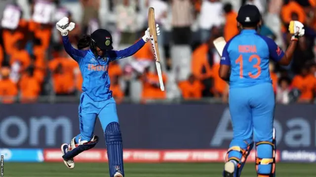வெற்றிக்கு 150 ரன்கள் வேண்டும் என்ற இலக்கோடு களமிறங்கிய இந்திய அணிக்கு ஜெமிமா ரோட்ரிகஸ், ரிச்சா கோஷ் இருவரும் 58 ரன்கள் குவித்தனர்.