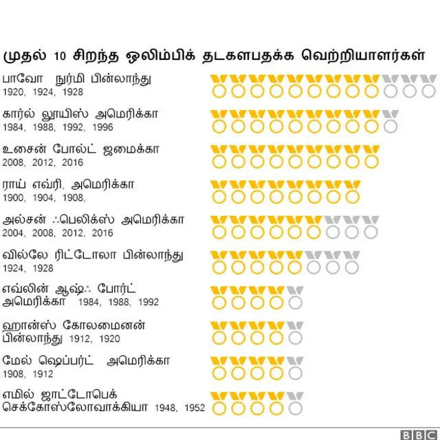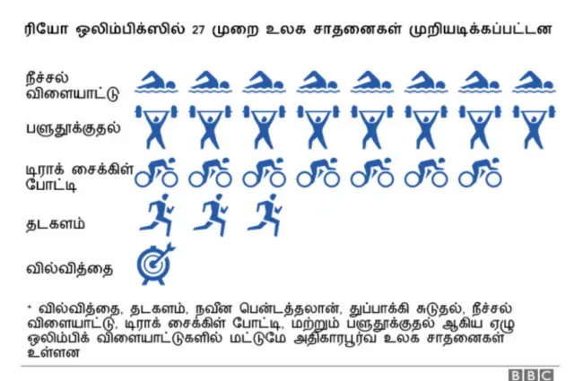 2016 ரியோ ஒலிம்பிக் போட்டிகளில் நடந்த முக்கிய புள்ளிவிவரங்களை பிபிசி விளையாட்டுப் பிரிவு பட்டியலிட்டுள்ளது.