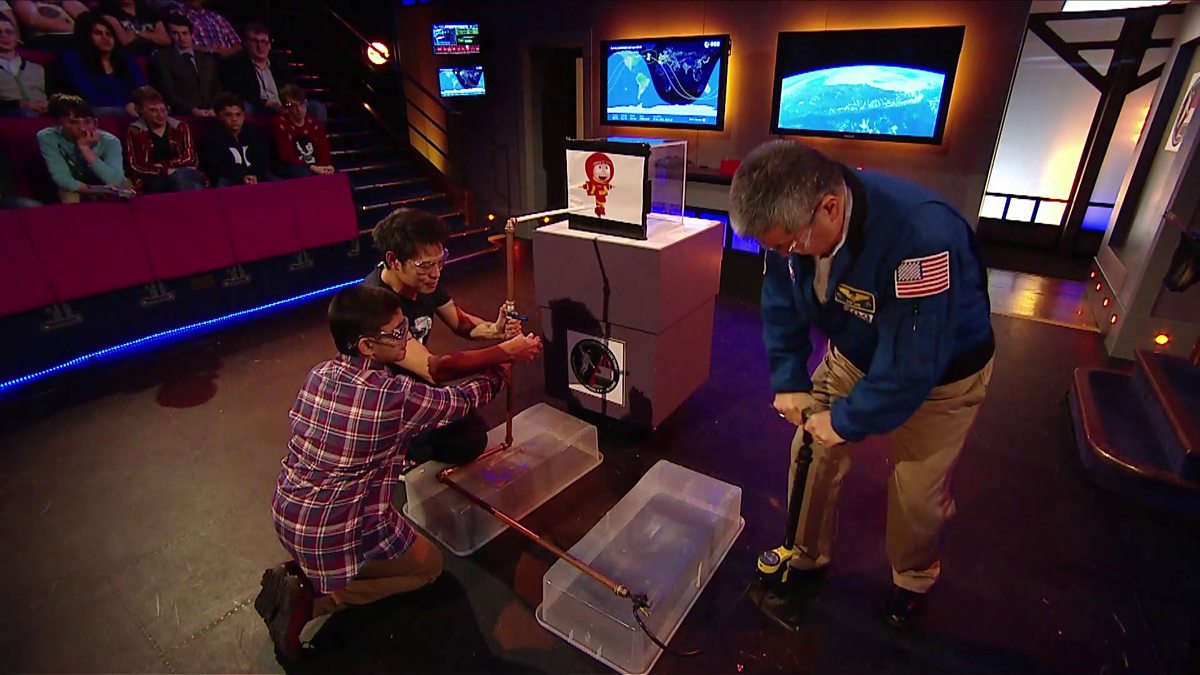 Dr Kevin Fong demonstrates how a space rocket’s launch direction affects its success in reaching orbit.
