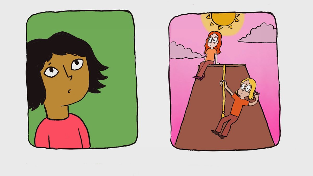 AMBER: Erbyn hyn, mae'n ddydd Sul. Dwi'n teimlo'r gwynt yn fy ngwallt i. A dwi'n crio. Dwi ddim yn drist, dwi wedi gwneud e. Dwi ar ben y wal ddringo. Dwi'n gallu gweld y traeth a’r môr o fan hyn. Fel dywedais i, dwi yn ddigon da. Na, dwi yn dda. Sgenna'i ddim ofn. Dwi'n fi.