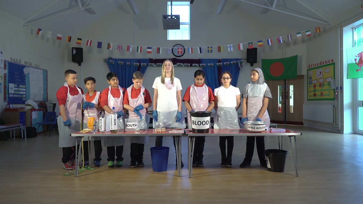 You could re-create the experiment in your class that demonstrates how food is broken down in the stomach using the kitchen utensils buckets and tubes, baked beans and a pair of tights and a potato masher.
