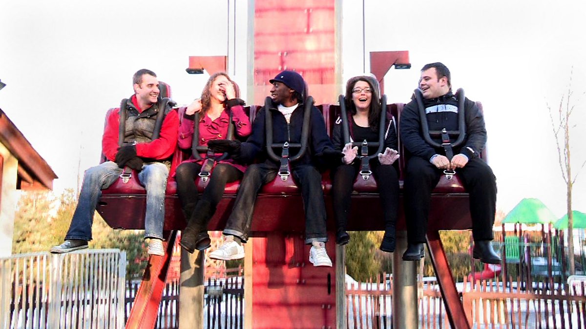 Jon uses a fairground ride to simulate the feeling of lower and higher gravitational forces. He explains that gravity is the force that keeps spacecraft and moons in orbit around planets and planets around stars.