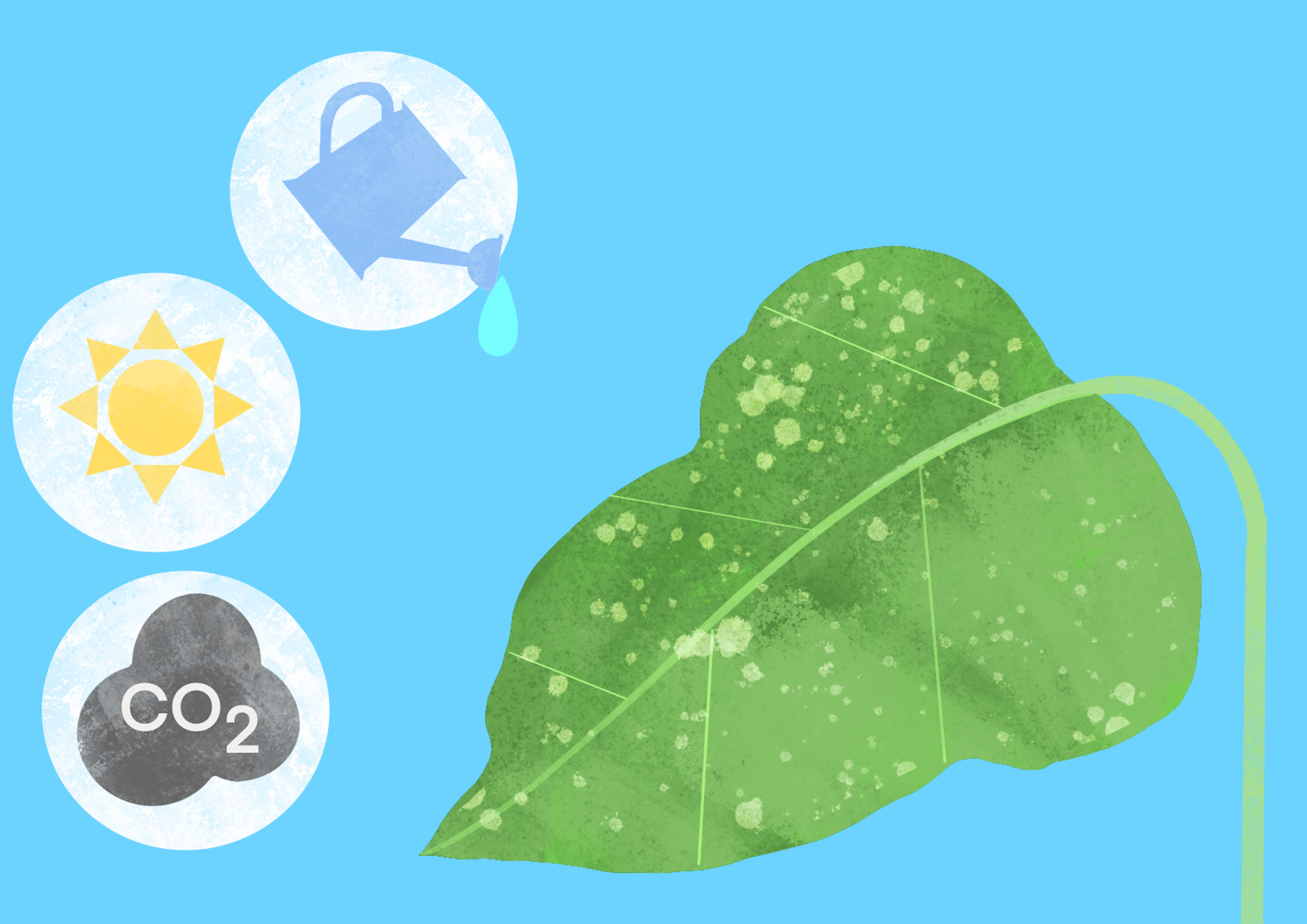 Sunlight, water, carbon dioxide. image