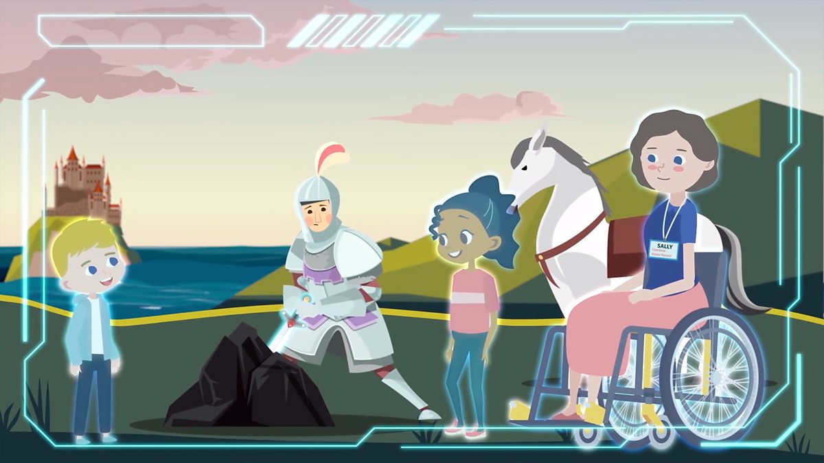 Sally: Don't worry, we have lots of information about King Arthur and the knights - just in a special room that has all the things that we think might not be definitely real. Let's go and check it out. Here he is, he's pulling his sword from a stone. Let's put our virtual reality headsets on and go and find out more.