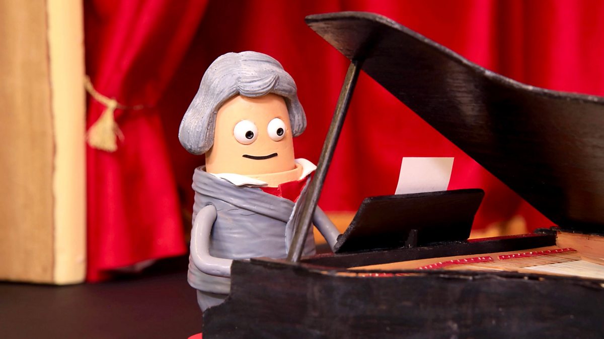 The video ends with Ludwig van Beethoven (1770-1827) and his Symphony Number 5. We discover that German composer Beethoven was a ground-breaker, who pushed boundaries. The music is powerful and emotional; the key is C minor, creating a dark, foreboding sound.
