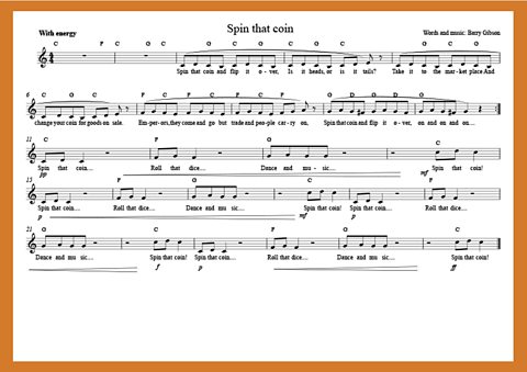 Download / print the music for Song 5: 'Spin that coin' (pdf)