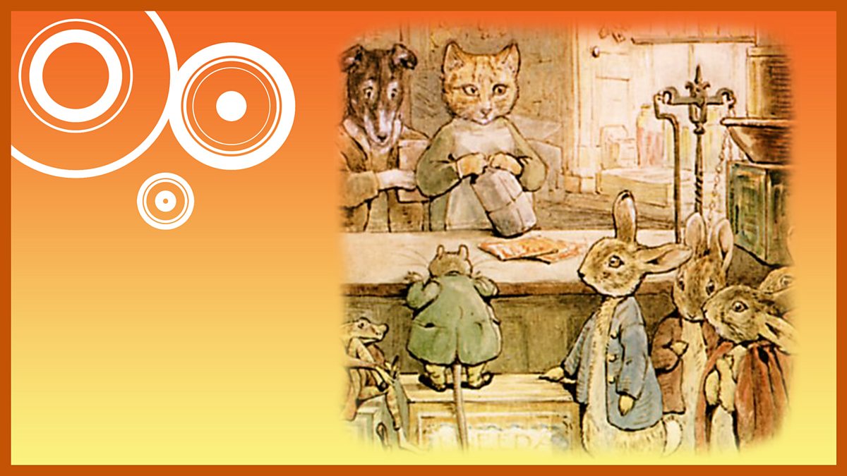 Ginger and Pickles sold red spotty handkerchiefs for a penny. They also sold sugar, cloth caps and wellington boots. The shop belonged to Ginger and Pickles. Ginger was a yellow tom-cat, and Pickles was a terrier dog. The rabbits who visited the shop were always a little bit afraid of Pickles. And the mice were rather afraid of Ginger.