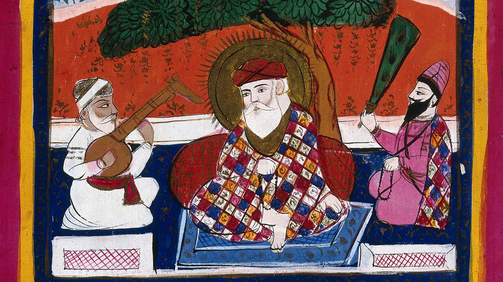 Focus image: Guru Nanak attended by his musician and holy man (Image courtesy of the Wellcome Collection) image