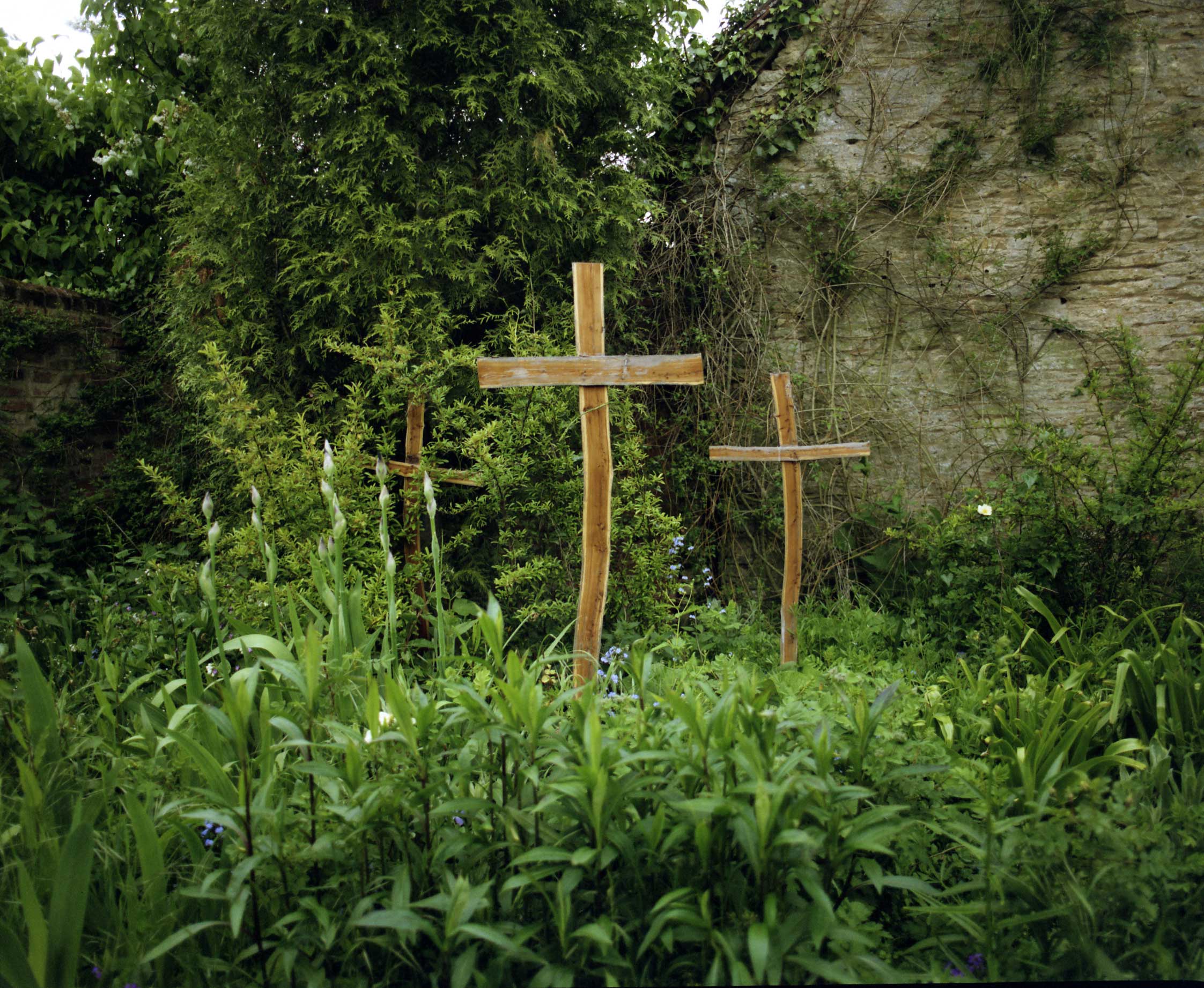 Focus image: A garden with Easter crosses. image