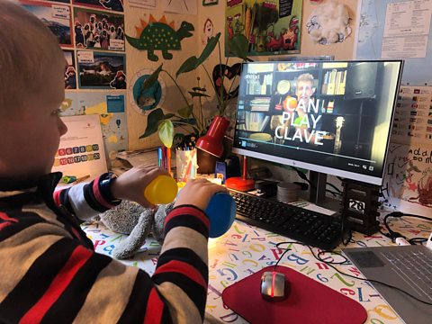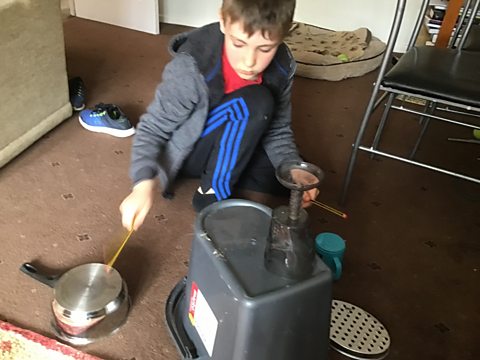 "We listened to the Mambo lesson and learnt the rhythms using kitchen and home appliances. From there we decided to make our own percussion and perform. This is Angus on his homemade drum kit."