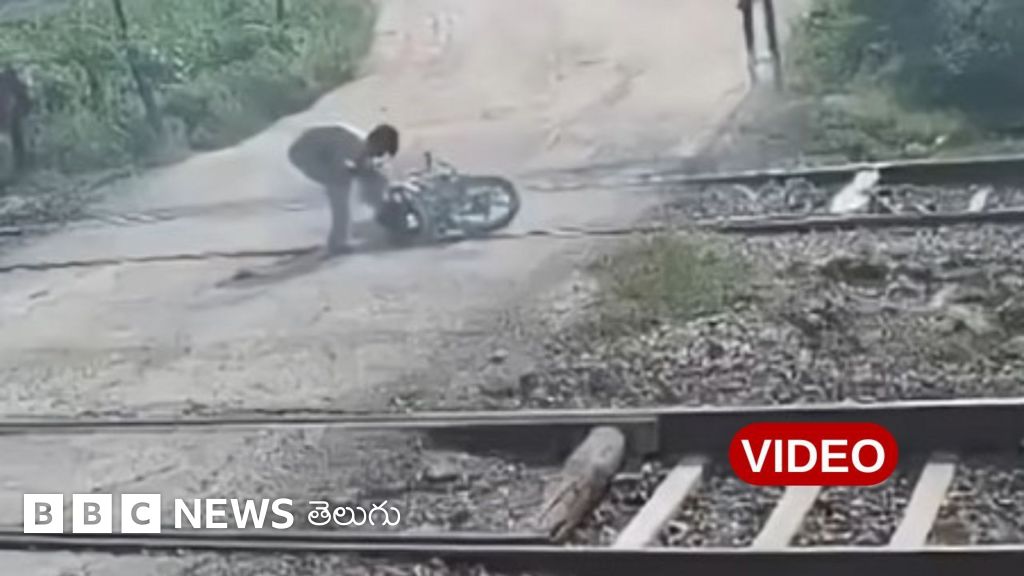 బైకును లేపే సమయంలో దూసుస్తున్న రైలును గమనించి తప్పించుకునేందుకు ప్రయత్నించారు.