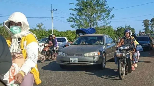 కుటుంబాలు వాహనాలపై తరలిపోతున్న దృశ్యాలు కంబోడియాలో కనిపించాయి.