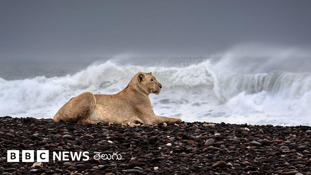 అద్భుతంగా తీసిన ఈ ఫోటోలో.. ఒక ఆడ సింహం నమీబియాలో గులకరాళ్లతో నిండిన బీచ్లో కూర్చుని తీక్షణంగా చూస్తూ ఉంది.