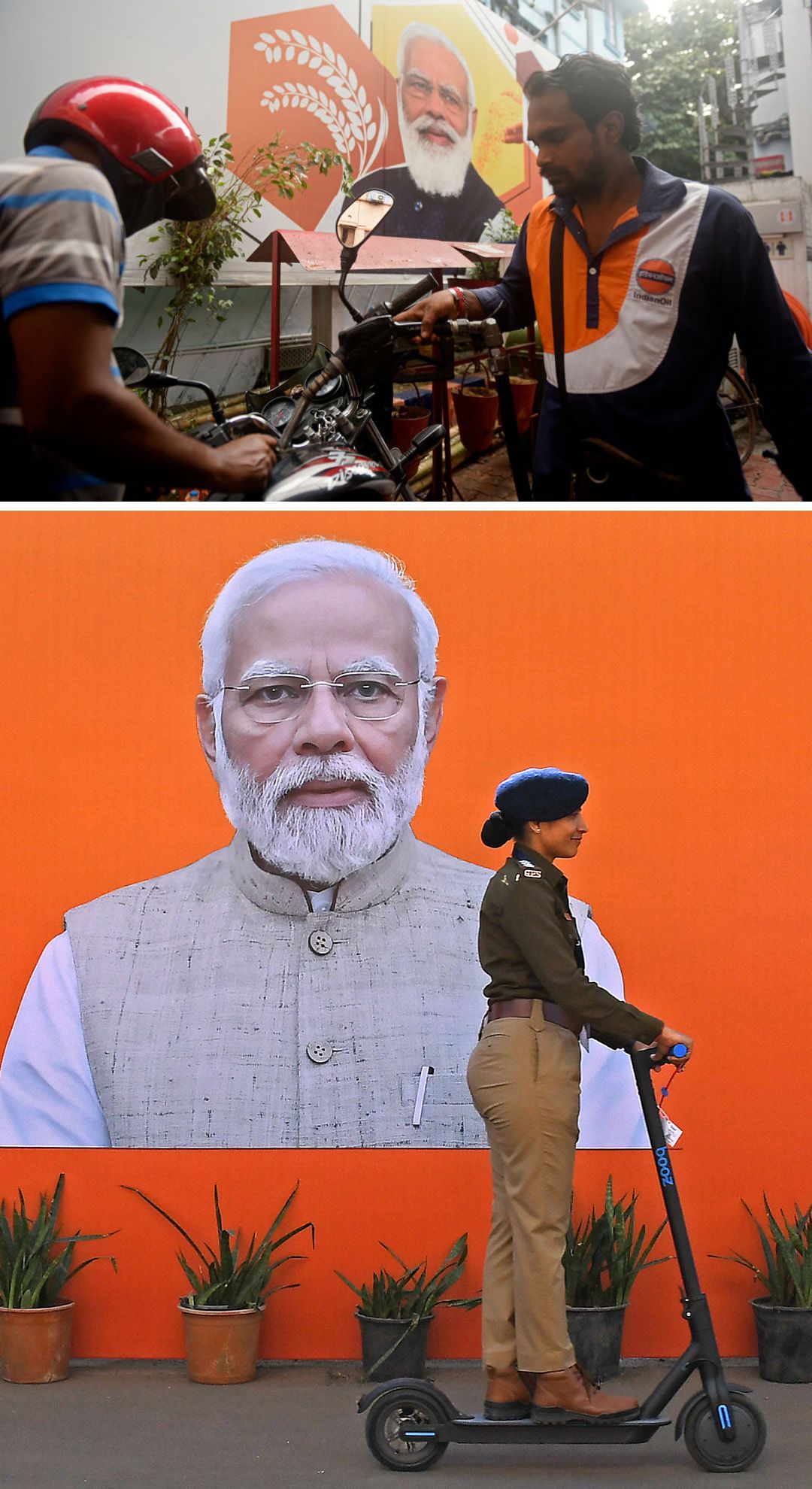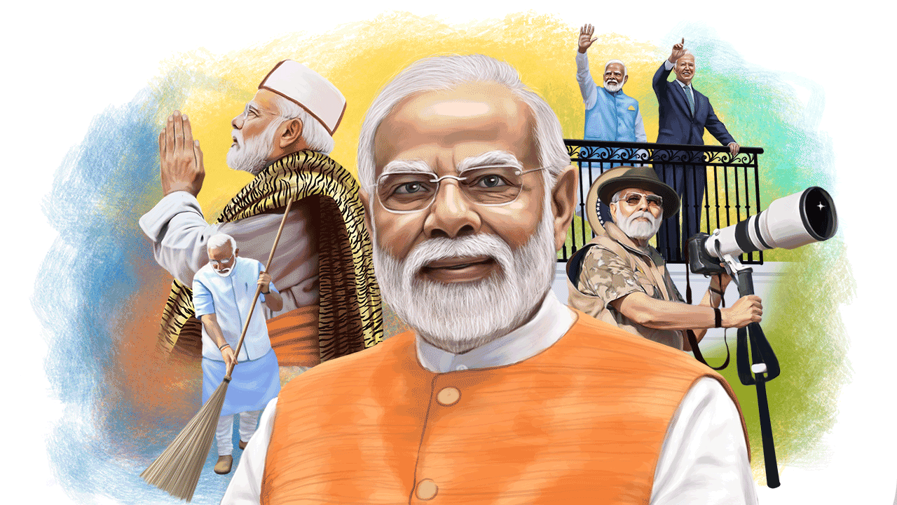 ఆయన ప్రతి చోటా ఉన్నారు. అన్ని ప్రధాన సోషల్ మీడియా ప్లాట్ఫారమ్లలో ఉన్నారు. అన్ని మంత్రిత్వ శాఖల వెబ్సైట్ల మొదటి పేజీలలో కనిపిస్తారు. రేడియోలో ఉన్నారు. టీవీల్లోనూ ఉన్నారు. బిల్ బోర్డుల మీద కూడా ఉన్నారు. మీకు మోదీతో సెల్ఫీ కావాలంటే చాలా రైల్వే స్టేషన్లలో సెల్ఫీ-కియోస్క్లు కూడా ఉన్నాయి. ఆయన పేరు మీద వ్యక్తిగత వెబ్సైట్, ఒక యాప్ కూడా ఉన్నాయి. నగర కూడళ్లు, విమానాశ్రయ టెర్మినల్స్, పెట్రోల్ బంకులు, ప్రభుత్వ ఖాదీ దుకాణాలు, రైల్వే ప్లాట్ఫారమ్లు ఇలా అన్నింటిలో మోదీ నవ్వుతున్న చిత్రాలు, కటౌట్లు దర్శనమిస్తాయి.