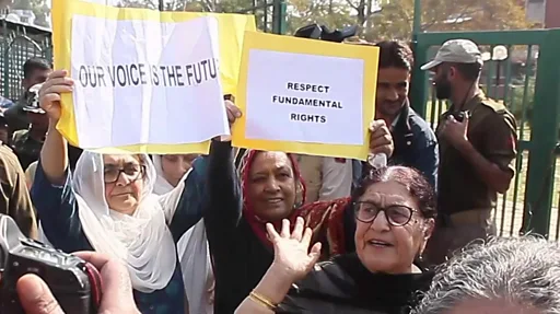 జమ్మూకశ్మీర్కు స్వయం ప్రతిపత్తి రద్దు చేయడాన్ని, రాష్ట్రాన్ని విభజించి రెండు కేంద్ర పాలిత ప్రాంతాలుగా ఏర్పాటు చేయడాన్ని వ్యతిరేకిస్తూ శ్రీనగర్లో మహిళలు ప్లకార్డులతో నిరసన ప్రదర్శన చేపట్టారు. కశ్మీర్లో మానవ హక్కులను పునరుద్ధరించాలని డిమాండ్ చేశారు. వీరిలో మాజీ ముఖ్యమంత్రి ఫరూక్ అబ్దుల్లా సోదరి ఖలీదా షా, కుమార్తె సారా అబ్దుల్లా తదితరులు ఉన్నారు.