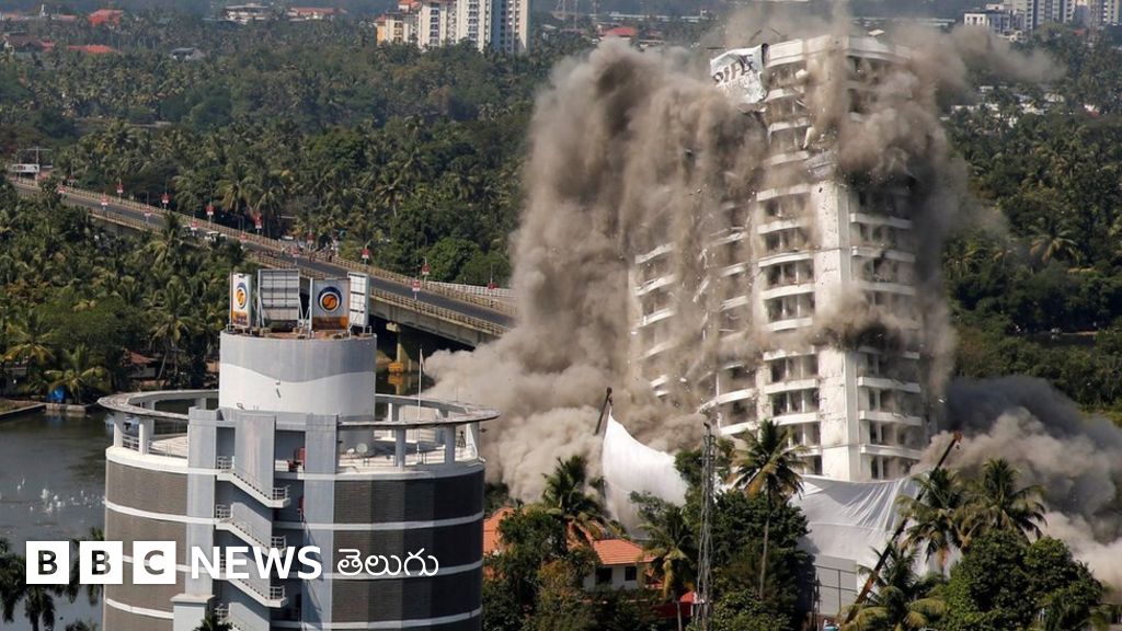 కేరళ తీరంలో రెండు ఆకాశహర్మ్యాలు క్షణాల్లో నేలమట్టం