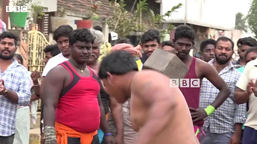 వారు పది కేజీల బరువుండే రాయిని గాల్లోకి విసిరి అది కిందపడుతున్నప్పుడు తమ ఛాతీతో ఢీకొడతారు..