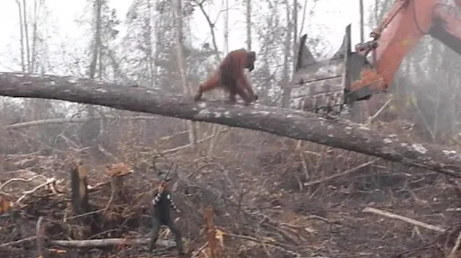 అడవిని నేలమట్టం చేస్తున్న బుల్డోజర్ను ప్రతిఘటించిన ఒరాంగుటాన్