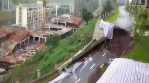 చైనాలోని గ్వాంగన్ నగరంలో ఆదివారం ఒక రోడ్డు దాదాపు 50 మీటర్ల మేర కుంగిపోవడం సీసీటీవీ కెమెరాల్లో నిక్షిప్తమైంది.