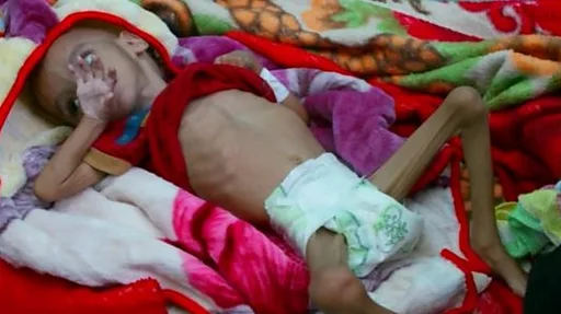 కడుదీనంగా కనిపిస్తున్న ఈ చిన్నారి పేరు బసీమ్. వయసు రెండేళ్లు. ముఖమంతా పీక్కుపోయి ఎముకల గూడులా కనిపిస్తున్న ఈమె నదియా ఆ చిన్నారి నాన్నమ్మ.