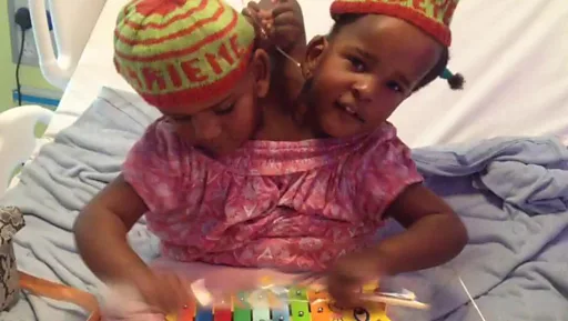 తలలు అతుక్కుని ఉన్న వీణావాణీలను ఎలా వేరు చేయాలో ఎవరికీ అంతుపట్టడంలేదు. మారిమే, ఎన్డీల పరిస్థితి కూడా అంతే క్లిష్టంగా ఉంది. వీణా వాణీలకు తల మాత్రమే అతుక్కుని ఉంది. కానీ.. మారిమే, ఎన్డీలకు వేరువేరు తలలు ఉండగా, శరీరం, ఇతర అవయవాలు అతుక్కుని ఉన్నాయి.