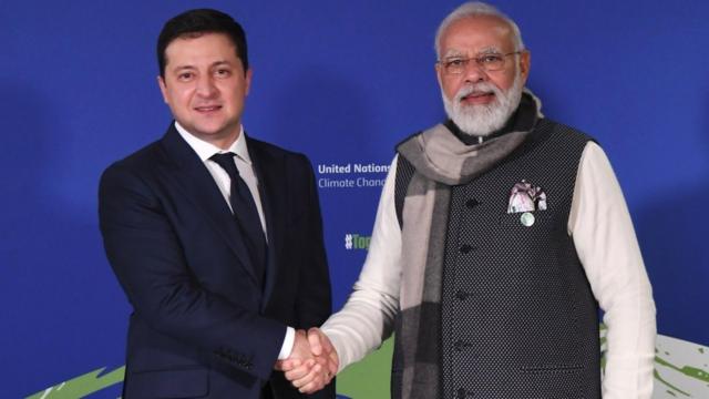 యుక్రెయిన్ అధ్యక్షుడు వొలొదిమిర్ జెలియెన్స్కీతో నేడు ప్రధాని నరేంద్ర మోదీ ఫోనులో మాట్లాడారు. యుక్రెయిన్-రష్యా యుద్ధం గురించి ఇద్దరు మాట్లాడుకున్నట్లు ప్రధానమంత్రి కార్యాలయం తెలిపింది.