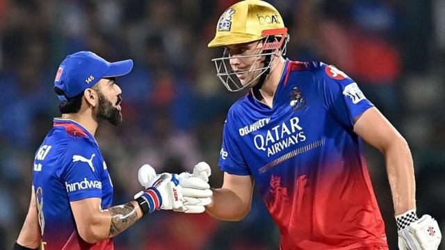 తొలుత బ్యాటింగ్ చేసిన బెంగళూరు జట్టులో విరాట్ కోహ్లీ 59 బంతుల్లో 83 పరుగులు చేసి నాటౌట్గా నిలిచాడు. కామెరాన్ గ్రీన్ 33 పరుగులు, మాక్స్వెల్ 28 పరుగులు రాబట్టారు.