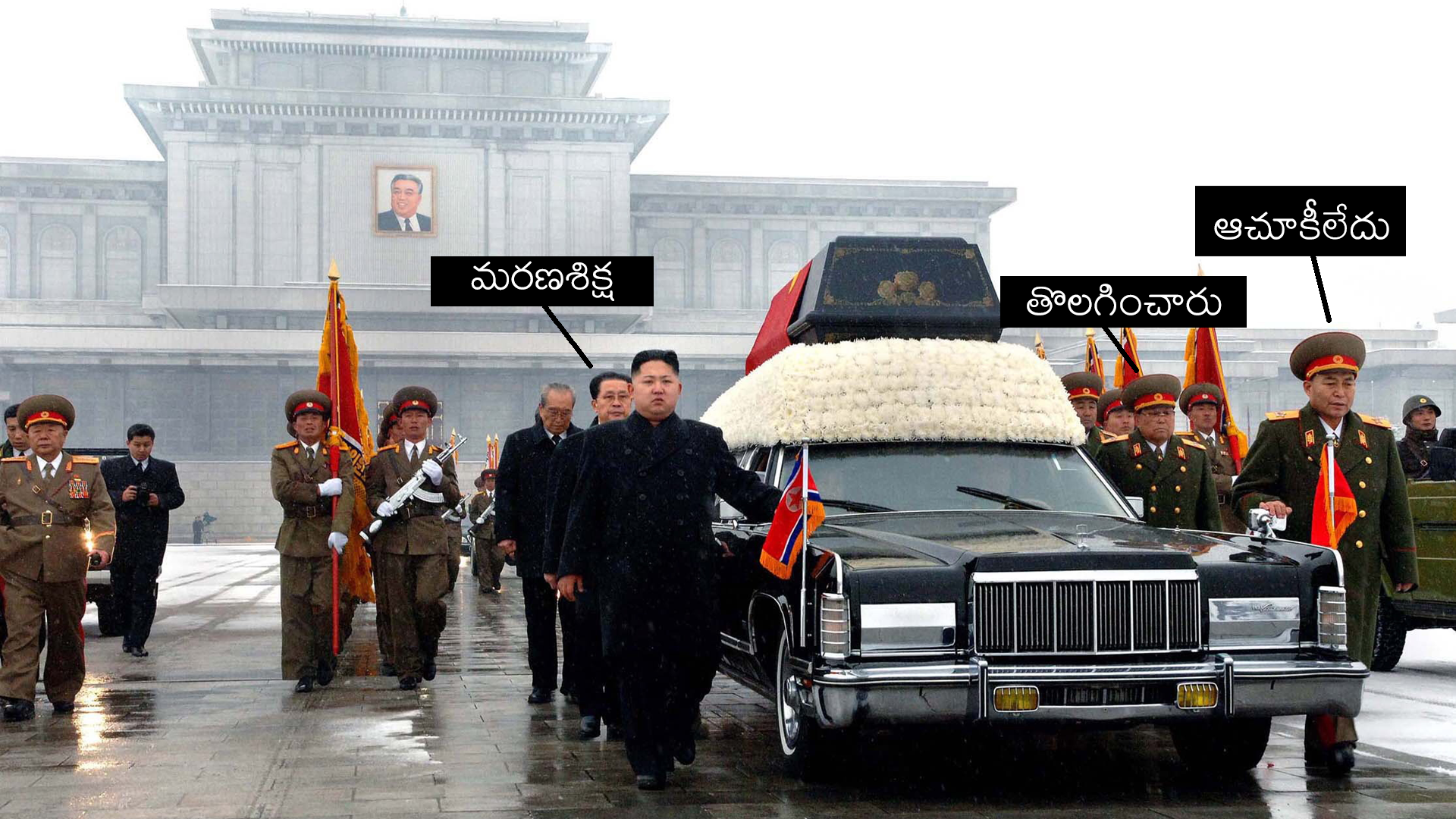 వీధుల్లో నల్లటి లింకన్ కాంటినెంటల్ కారు మెల్లగా కదులుతోంది. అది వెళ్తున్న దారి పొడవునా మంచు కురుస్తోంది. ఆ కారు రూఫ్ పై పరుపులా పరచిన తెల్లటి క్రిసాంతిమం పూలమీద ఉత్తర కొరియా సుప్రీం లీడర్ కిమ్ జోంగ్-ఇల్ శవపేటిక ఉంచారు.